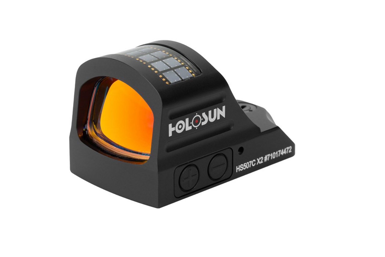 - HS507C: Red Multi-Reticle, 7075 Aluminum, Open, Solar, Shake Awake, Pistol