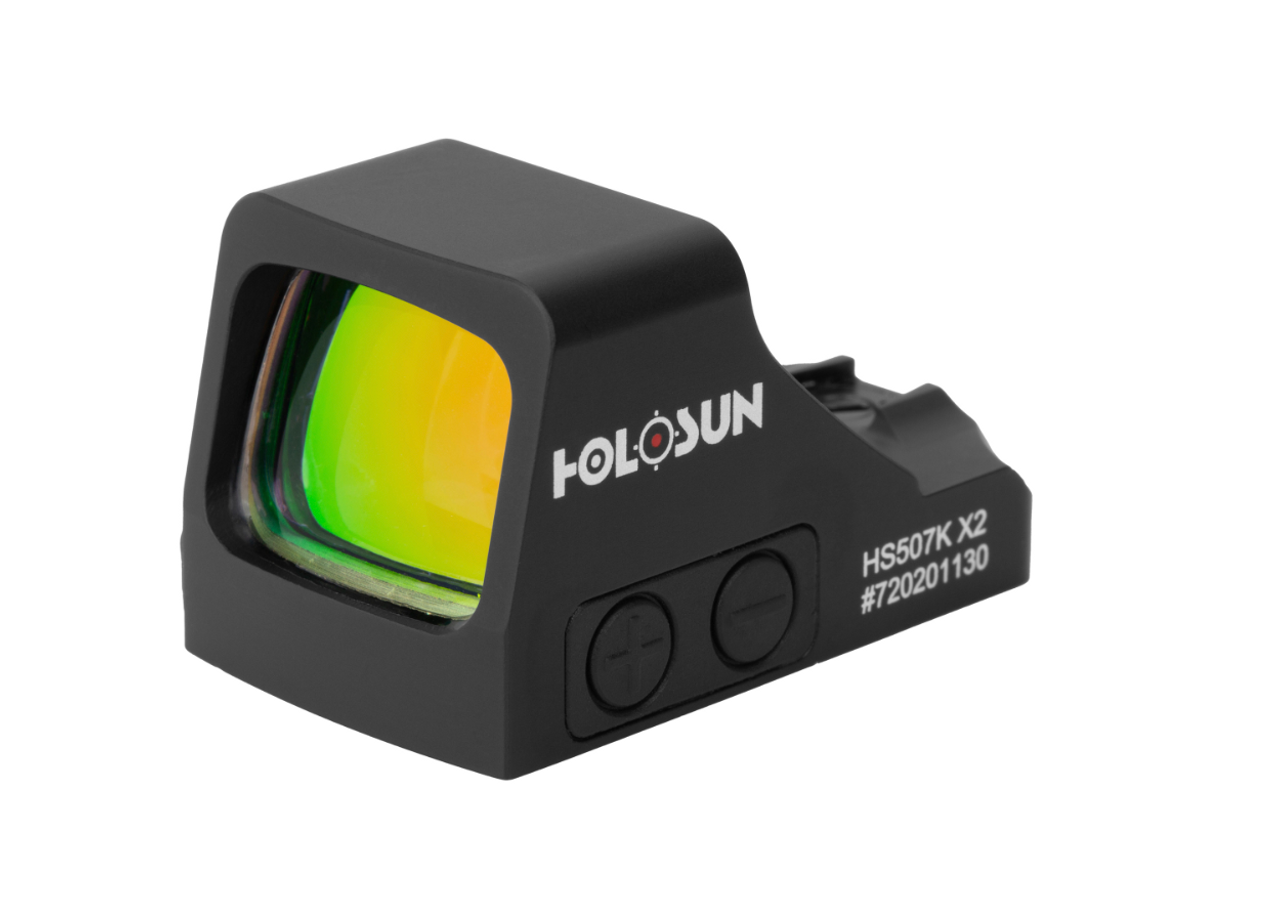 - HS507K: Red Multi-Reticle, 7075 Aluminum, Open, Solar, Shake Awake, Compact Pistol