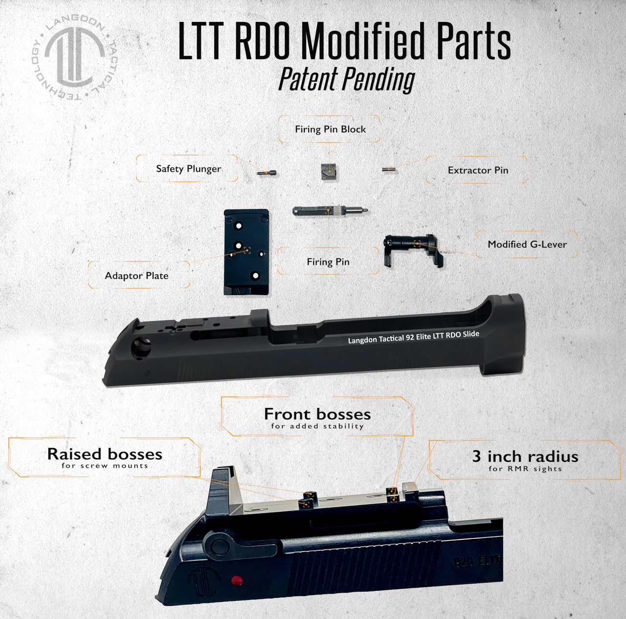 We recommend that this product as well as all other firearms parts & kits sold by Langdon Tactical be installed by a competent pistolsmith. No liability is expressed or implied for ANY damage or injury which may result from improper installation or use of this product. Installation of any firearm parts may limit or void the manufacturers warranty. We strongly recommend that the safety and operation of your modified handgun be thoroughly checked by an accredited gunsmith prior to use.